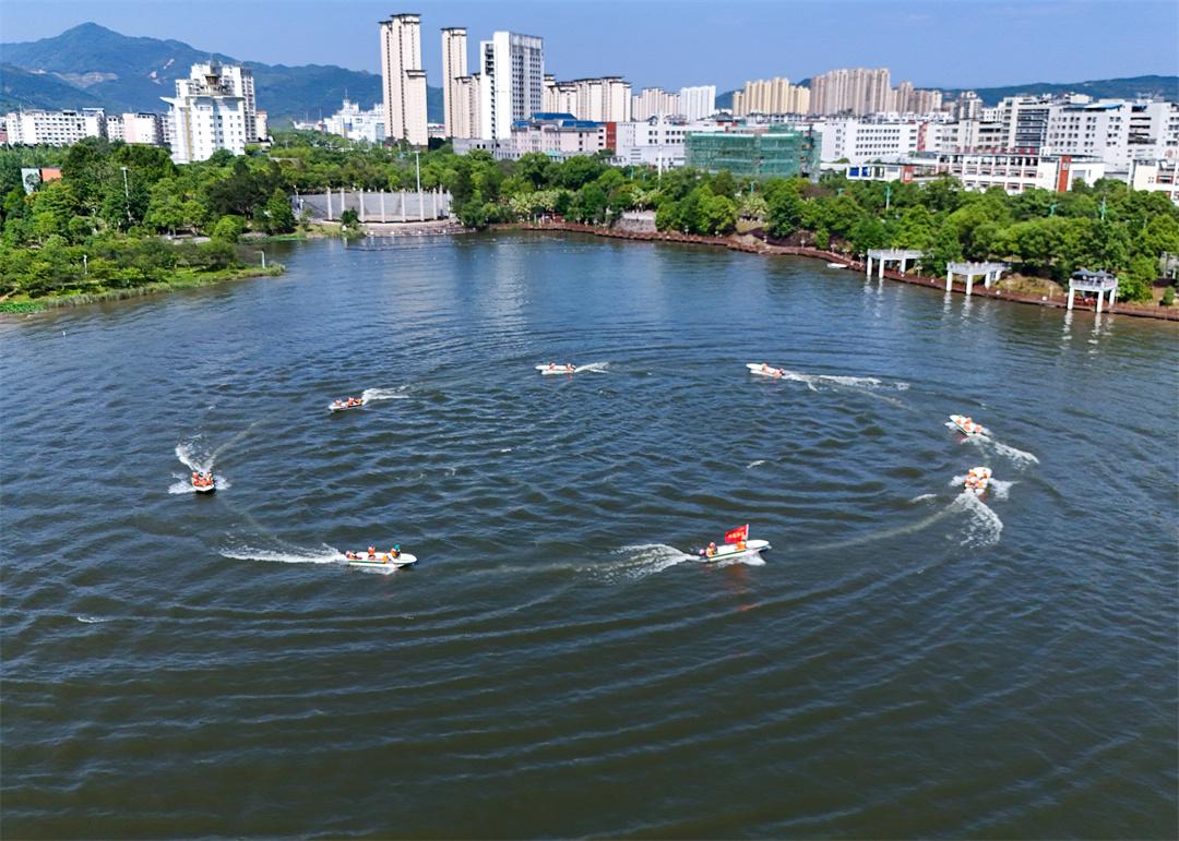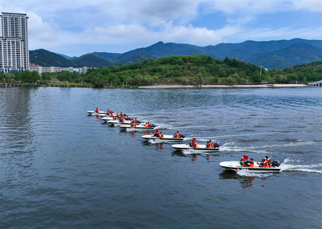 連日來,福建省三明市沙縣區(qū)鳳崗街道龍湖公園水域一片火熱練兵景象。隨著指揮員一聲令下,十余艘舟艇如離弦之箭,破浪而出。
