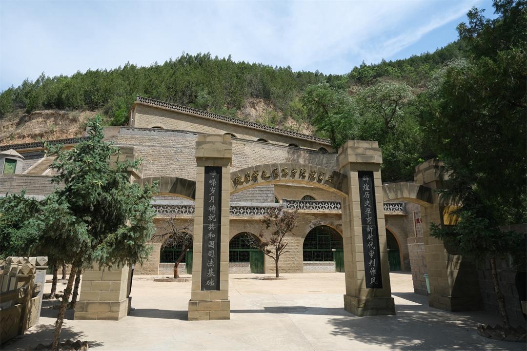 拾級(jí)而上,山頂一座莊嚴(yán)肅穆的三孔石拱門映入眼簾,“陜甘寧邊區(qū)高等法院舊址”11個(gè)鎦金大字在石拱門正中,兩側(cè)題寫“崢嶸歲月鑄就共和國(guó)司法基礎(chǔ) 輝煌歷史孕育新時(shí)代審判作風(fēng)”。