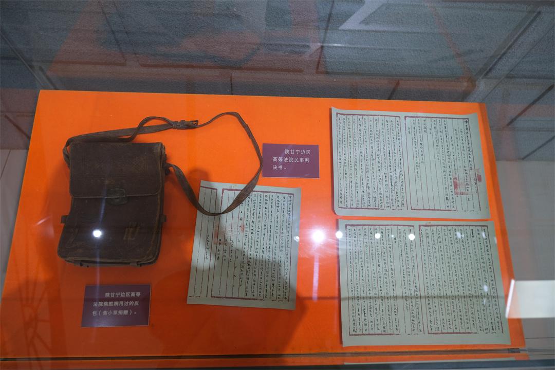 陳列館里,保存著毛澤東就黃克功案給審判長(zhǎng)雷經(jīng)天的親筆信、馬錫五親自審理的案件等大量邊區(qū)法院案卷,以及謝覺哉等歷任邊區(qū)高等法院院長(zhǎng)留下的大量文書和遺物。