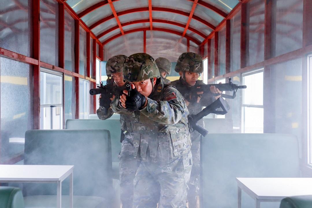 圖為李興坤帶領(lǐng)小組進(jìn)行火車(chē)反劫持演練。