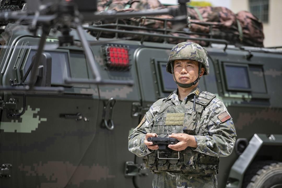 圖為李興坤利用無(wú)人機(jī)進(jìn)行空中偵察。