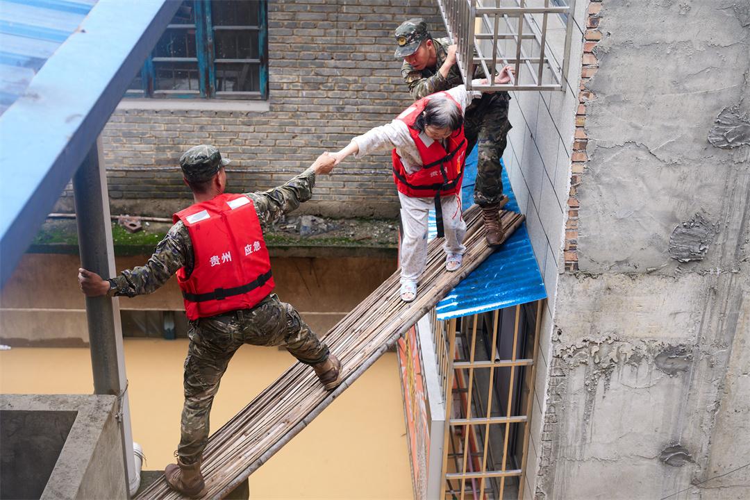 “老鄉(xiāng),我們是從凱里趕過來救災的武警支隊,這次洪峰過境風險比較高……”“政府不會不管大家的……”陳方明耐心勸說,終于打動老人同意撤離。