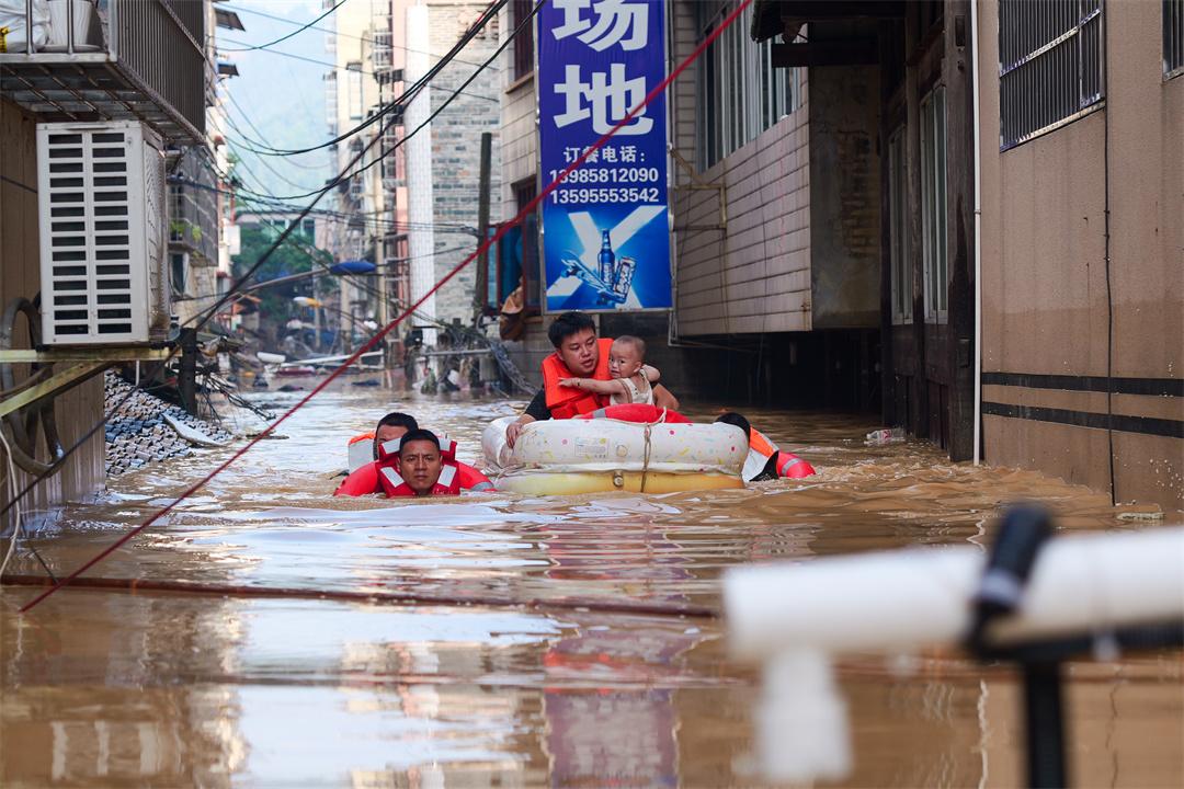 6月24日至7月5日,受持續(xù)強降雨及上游來水疊加影響,貴州省黔東南州榕江縣城遭遇兩次洪峰過境,境內(nèi)多條河流水位持續(xù)上漲,縣城多處低洼地帶被淹,人民群眾生命財產(chǎn)安全遭受嚴重威脅。武警貴州總隊聞令而動,先后派出千余名官兵攜帶救生衣、沖鋒舟、挖掘機、推土機等救援器材奔赴一線,緊急馳援。