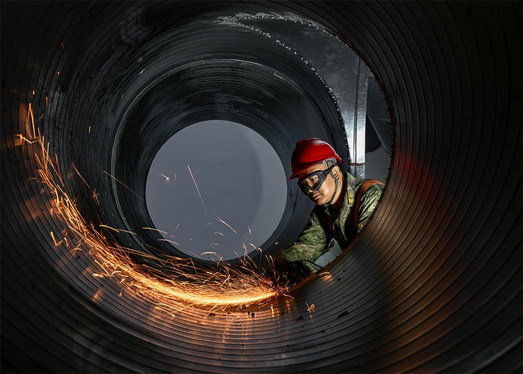 “照這個(gè)進(jìn)度下去,肯定會影響整個(gè)工期?!币淮危彻こ踢M(jìn)入施工高峰,鋼板打孔數(shù)量呈幾何級數(shù)增長,采取傳統(tǒng)方式速度慢、耗時(shí)長,急得營連領(lǐng)導(dǎo)上了火。崔道虎帶領(lǐng)幾名骨干經(jīng)過反復(fù)摸索,成功研制出鋼板自動沖孔機(jī),將工作時(shí)間較以前縮短近90%。
