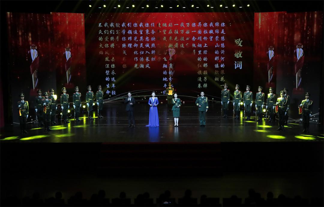 在臨沂大劇院,舉行了“‘楠’以忘記”追思會。紀(jì)念片《一城燈火念忠魂》,再現(xiàn)了張楠短暫而光輝的一生和部隊(duì)官兵的十年傳承。一幕幕真實(shí)畫面、一句句樸素話語直抵人心,令在場觀眾動(dòng)容。在緬懷張楠烈士的文藝演出中,演員們通過影像、情景劇、表演唱、朗誦等形式,表達(dá)了對烈士的崇高敬意。