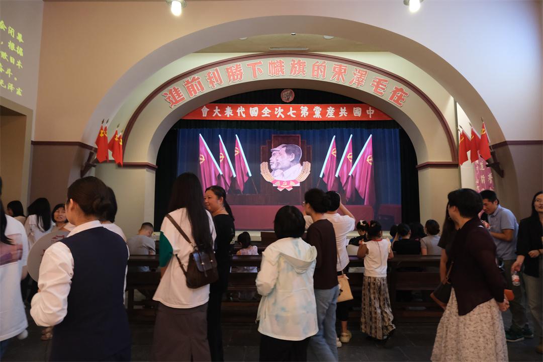圖為中共七大會(huì)場(chǎng)復(fù)原場(chǎng)景。
