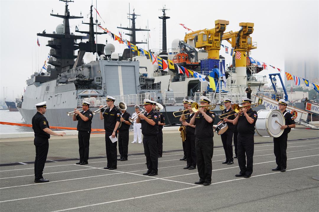 圖為抵達(dá)符拉迪沃斯托克后,中國艦艇編隊(duì)受到熱烈歡迎。黨文彬 攝
