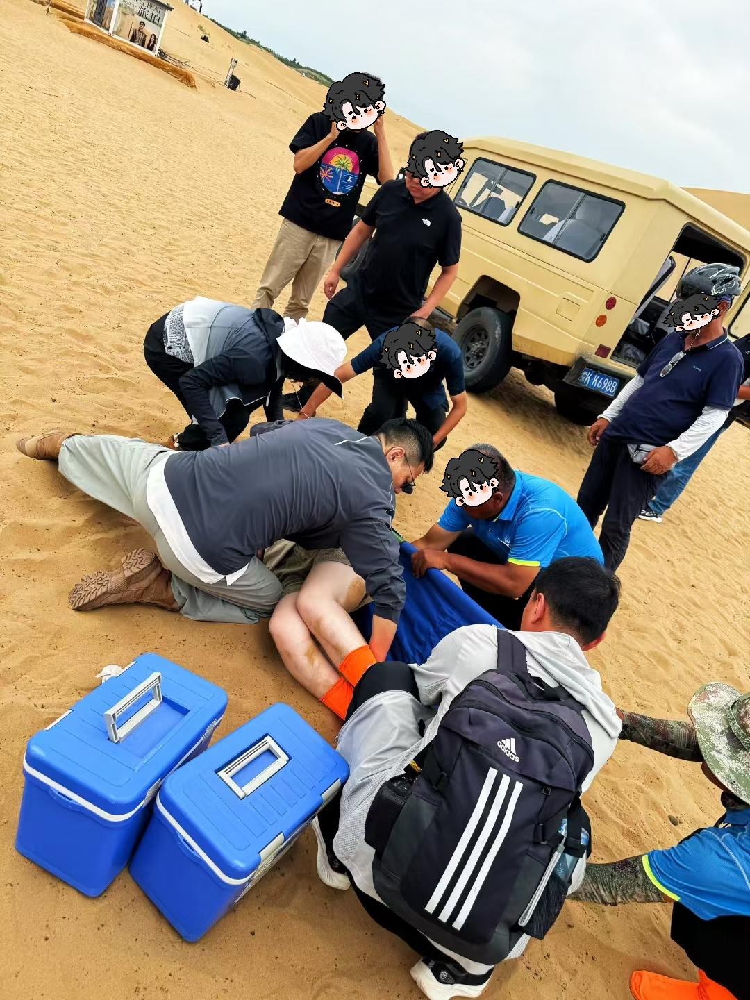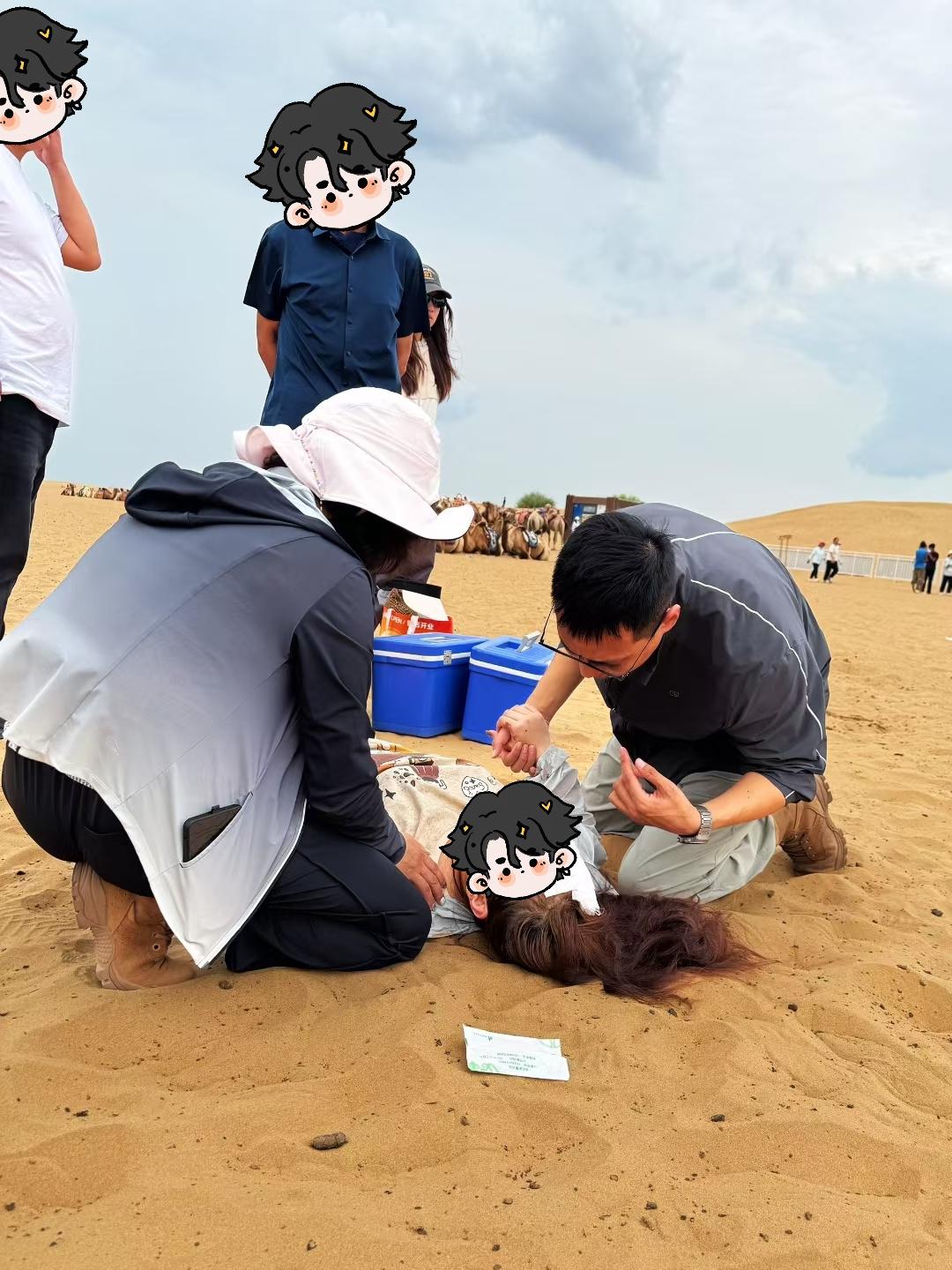 當(dāng)日下午,一名30多歲女游客帶著三歲兒子體驗(yàn)景區(qū)駱駝騎行項(xiàng)目時(shí),因駱駝突然受驚失衡,母子二人從駝背上墜落倒地,情況十分危急。景區(qū)工作人員雖然第一時(shí)間抵達(dá)現(xiàn)場(chǎng),但因缺乏專(zhuān)業(yè)醫(yī)療知識(shí),無(wú)法及時(shí)進(jìn)行有效救治。