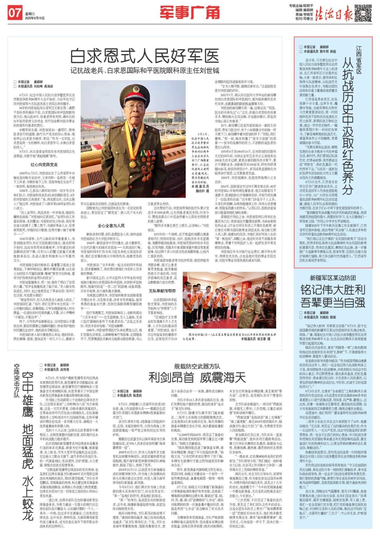 9月3日當(dāng)天,江西省吉安軍分區(qū)專門邀請參戰(zhàn)老兵、立功受獎退役軍人代表走進(jìn)駐地中小學(xué)校,與廣大師生共同觀看抗戰(zhàn)勝利80周年紀(jì)念活動直播,感悟人民軍隊(duì)由弱到強(qiáng)的光輝歷程,在孩子們心中種下愛黨愛國愛軍的種子。