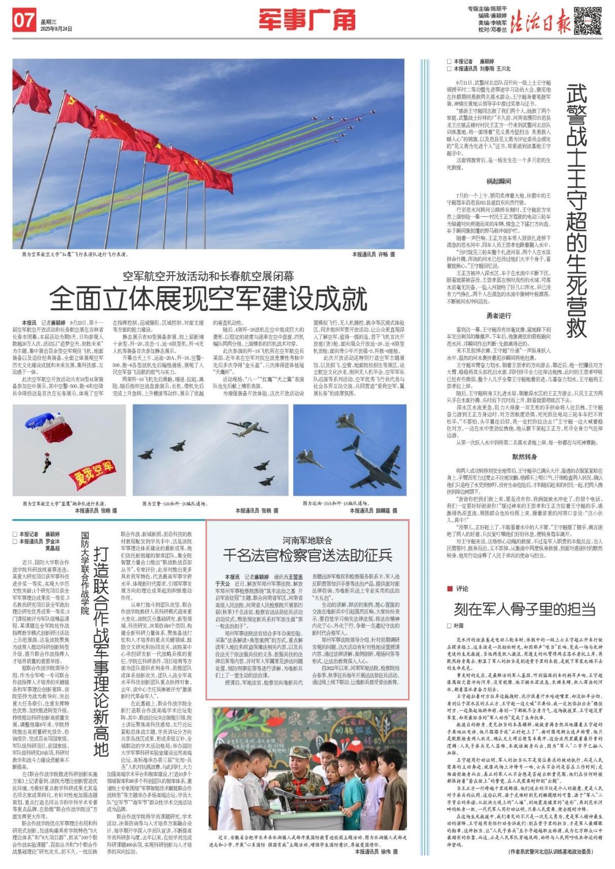自2022年以來,河南軍地法院、檢察院結合春季、秋季征兵每年開展送法助征兵活動,通過線上線下聯動,讓準新兵接受普法教育。