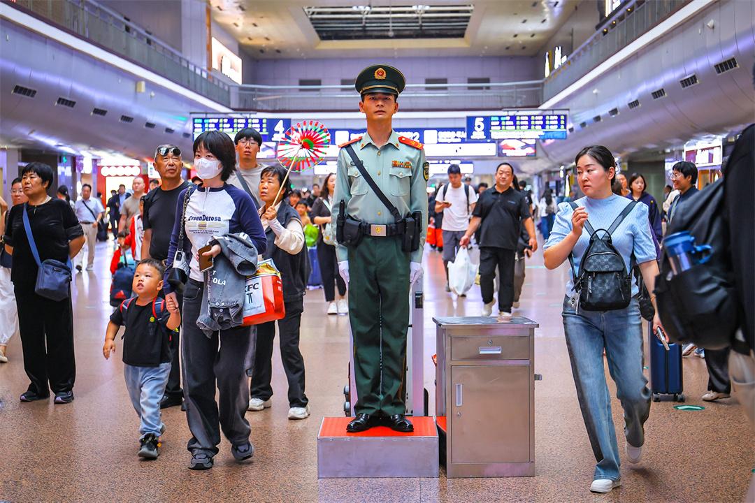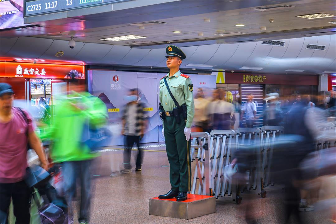 國(guó)慶假期最后兩天,北京鐵路交通樞紐迎來雙向返程客流高峰。為保障旅客安全有序出行,武警北京總隊(duì)執(zhí)勤第六支隊(duì)官兵堅(jiān)守執(zhí)勤戰(zhàn)位,與重點(diǎn)站區(qū)管委會(huì)、鐵路公安等部門搭建聯(lián)防聯(lián)控體系,通過實(shí)時(shí)客流監(jiān)測(cè)系統(tǒng)動(dòng)態(tài)調(diào)整勤務(wù)部署,在進(jìn)出站口、安檢區(qū)、候車大廳等關(guān)鍵點(diǎn)位設(shè)置警戒哨,協(xié)助維護(hù)秩序,熱心提供幫助,以實(shí)際行動(dòng)確保旅客平安順利出行。