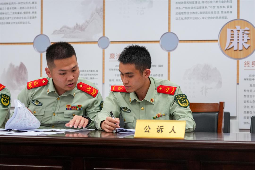 “現(xiàn)在開(kāi)庭!”隨著“審判長(zhǎng)”敲響法槌,“庭審”在武警后勤學(xué)院學(xué)員某大隊(duì)拉開(kāi)帷幕。