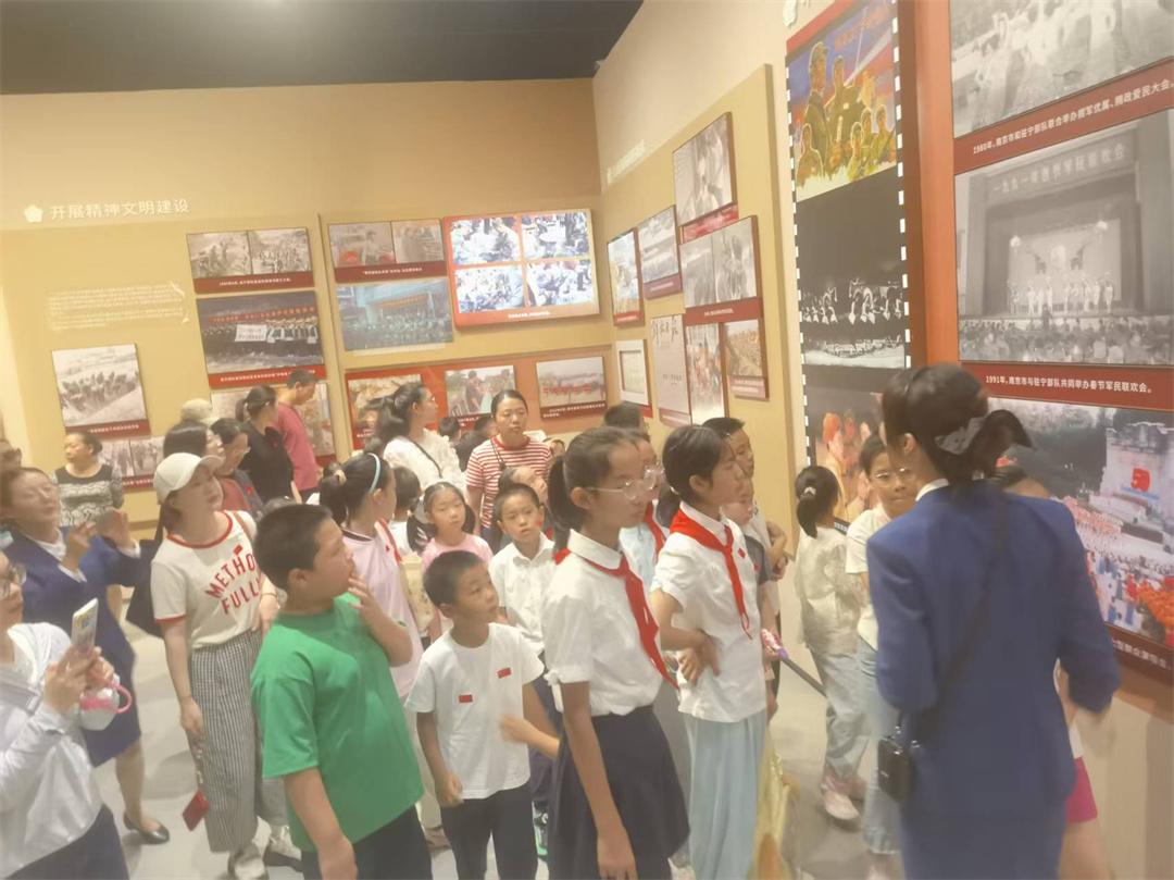 南京雙擁文化館展陳面積約2500平方米,主題為“軍民同心榮光共鑄”,分為浴血奮戰(zhàn)魚水情深、奮發(fā)圖強休戚與共、勇立潮頭軍民同心、踔厲前行強國強軍四個篇章,采取圖文、實物、影像、AI復(fù)原等多元手段,講述發(fā)生在南京的雙擁故事,生動呈現(xiàn)“愛我人民愛我軍”的時代篇章和軍政軍民團結(jié)的恢宏畫卷。試開放當天,有上千人次前來參觀。