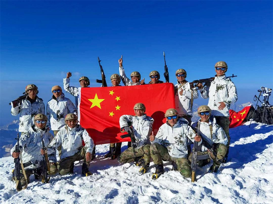 圖為2022年“厄爾布魯士之環(huán)”國際軍事比賽中,次羅布(前排左二)與戰(zhàn)友們登頂厄爾布魯士西峰山頂。