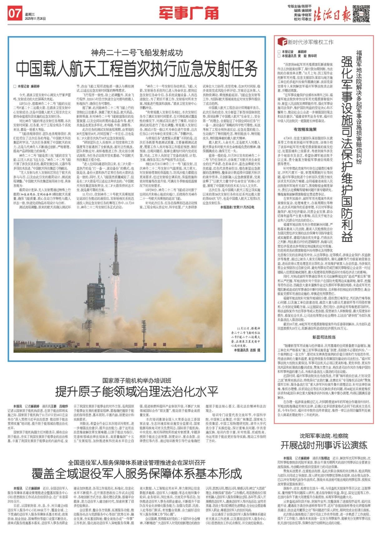 “隨著新型軍用設(shè)施與經(jīng)濟建設(shè)、民用基建的空間重疊度日益增加,施工單位未嚴格落實‘施工前軍事設(shè)施普查’制度,易招致不必要的糾紛?!粋€案例勝過一沓文件’,要切實發(fā)揮典型案例的價值引領(lǐng)和行為規(guī)范作用,傳遞法律的力量和溫度,彰顯持續(xù)服務(wù)保障國防建設(shè)的司法擔(dān)當?!备V蒈娛路ㄔ捍笮T洪L黃琛說,軍事司法機關(guān)必須以更高標準、更優(yōu)舉措、更實作風(fēng)鞏固和拓展政治整訓(xùn)成效,聚焦主責(zé)主業(yè),將改進司法作風(fēng)作為維護國防和軍事利益的著力點,為練兵備戰(zhàn)注入強勁的司法動能。