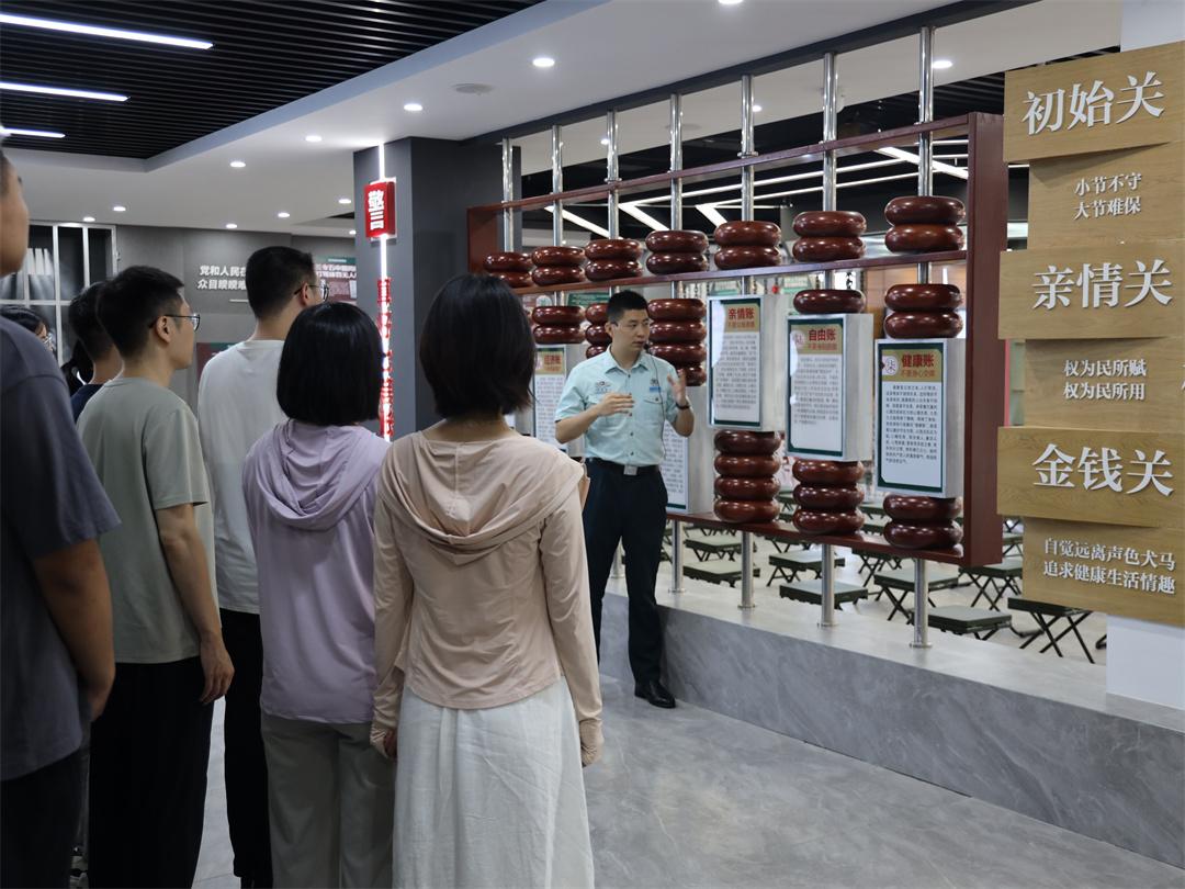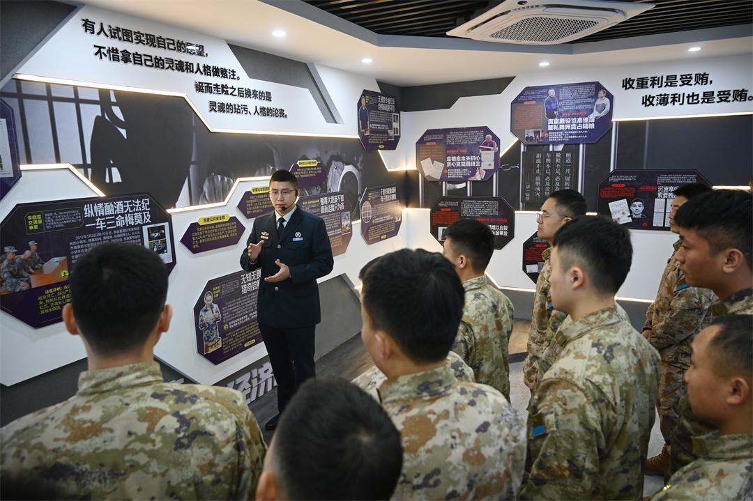 圖為網(wǎng)絡(luò)空間部隊某部新招聘錄用的文職人員參觀警示教育展廳。