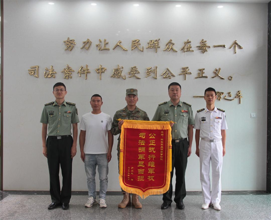 圖為部隊(duì)官兵向昆明軍事法院贈送錦旗。