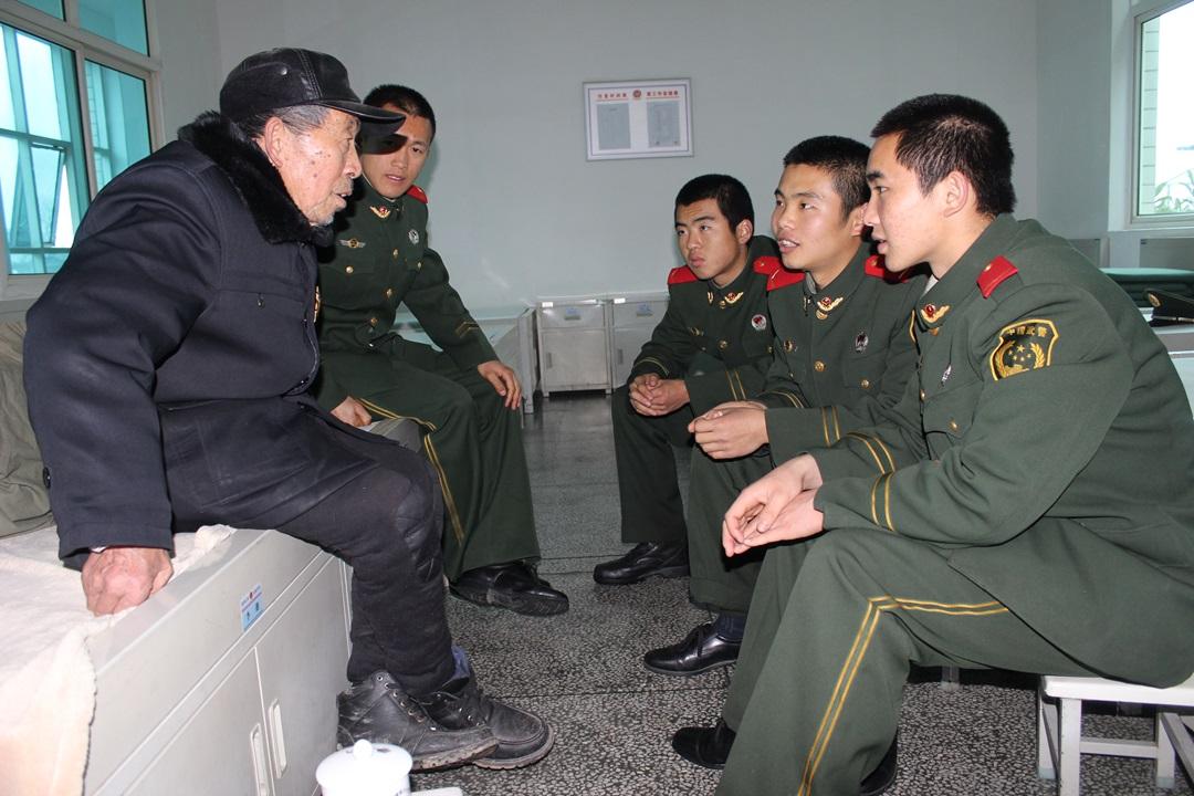 圖為武警炎陵中隊邀黃繼光同志生前同班戰(zhàn)友游克源來隊參觀。