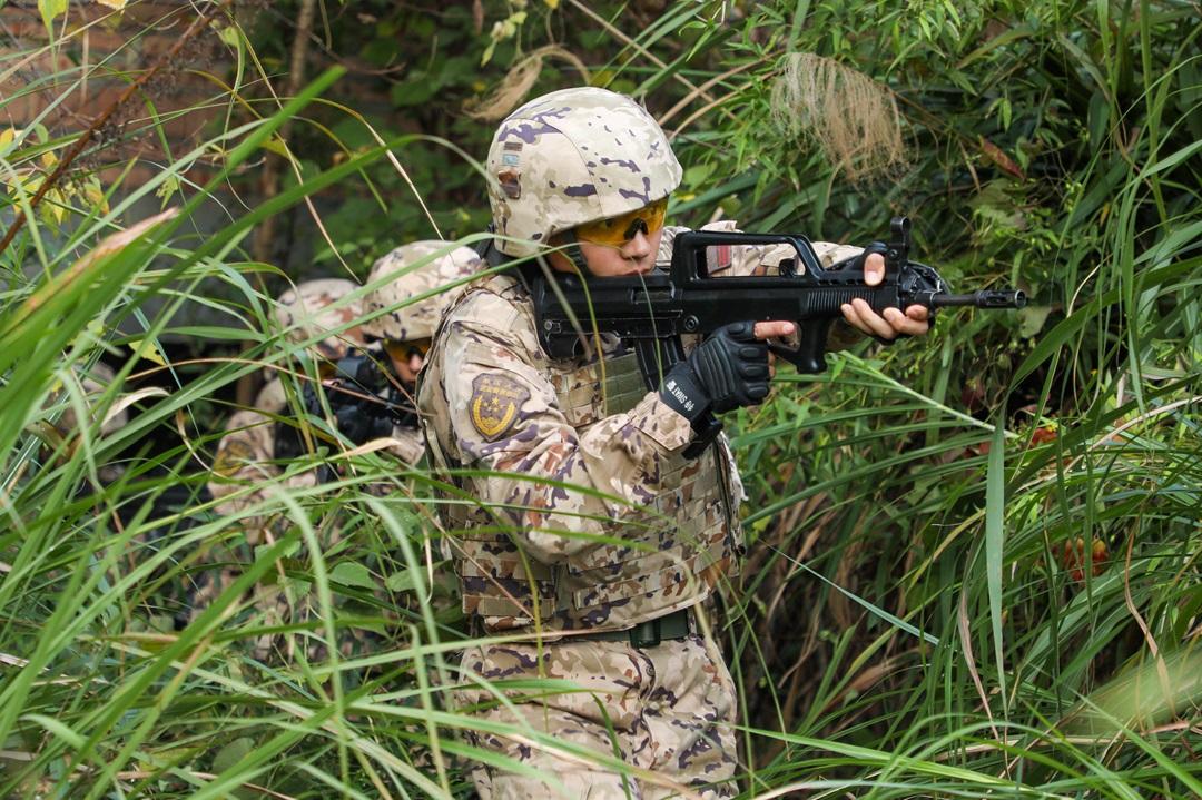 圖為武警炎陵中隊組織官兵赴野外復(fù)雜地域開展實戰(zhàn)演練,錘煉官兵應(yīng)急處突硬本領(lǐng)。