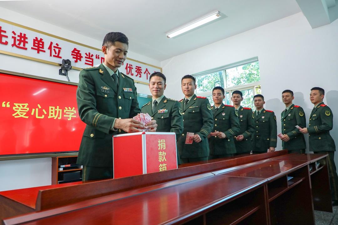圖為武警炎陵中隊組織開展“愛心助學(xué)”捐款活動。