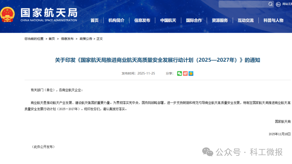 2025年,國(guó)家國(guó)防科工局設(shè)立商業(yè)航天司,印發(fā)《推進(jìn)商業(yè)航天高質(zhì)量安全發(fā)展行動(dòng)計(jì)劃(2025-2027年)》,提出將商業(yè)航天納入國(guó)家航天發(fā)展總體布局,加快形成航天新質(zhì)生產(chǎn)力,實(shí)現(xiàn)航天發(fā)展效能整體提升,有力支撐航天強(qiáng)國(guó)建設(shè)。全年商業(yè)航天持續(xù)快速發(fā)展,產(chǎn)業(yè)生態(tài)協(xié)同推進(jìn),科研生產(chǎn)安全有序,產(chǎn)業(yè)規(guī)模不斷壯大,創(chuàng)新創(chuàng)造活力持續(xù)增強(qiáng),行業(yè)治理能力不斷提升。在液氧甲烷重復(fù)使用火箭研制中,首次吸納商業(yè)航天企業(yè)作為總承研單位參與;海南商業(yè)航天發(fā)射場(chǎng)正式具備雙工位發(fā)射能力;多型商業(yè)火箭完成發(fā)射任務(wù)。