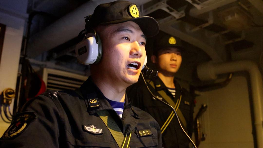 面對(duì)咄咄逼人的對(duì)手,全艦官兵保持頭腦冷靜,堅(jiān)決聽(tīng)從指揮。雷達(dá)兵盯住屏幕,不斷通報(bào)外艦運(yùn)動(dòng)要素,指揮員根據(jù)現(xiàn)場(chǎng)態(tài)勢(shì)靈活調(diào)整陣位,死死擋住對(duì)手穿插編隊(duì)的路線。值更官根據(jù)航行規(guī)則,有理有據(jù)多次喊話施壓,人員同步做好偵察取證,最終迫使對(duì)方放棄挑釁、悻悻離開(kāi)。