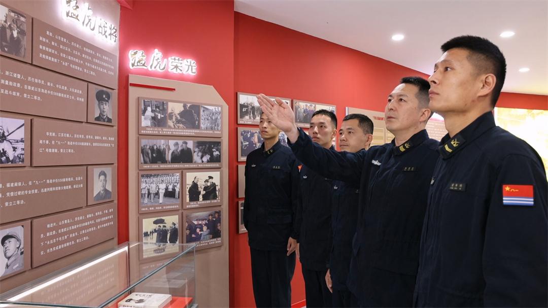 “以前的艦艇裝備簡陋,先輩們靠著對黨的絕對忠誠,在海上槍林彈雨中殺出一條血路。現(xiàn)在裝備先進了,但忠誠的底色不能變,越是走得遠、沖在前,越不能偏離航向?!奔t河艦一級軍士長韓建廷站在文化長廊前對年輕艦員說。