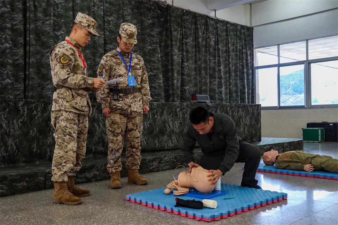圖為參考人員進行執(zhí)勤專業(yè)技能考核。
