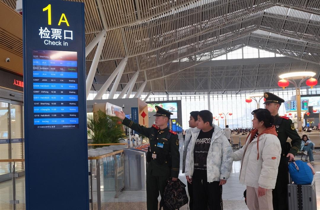 韋朝旺告訴《法治日報》記者:“北京朝陽站作為北京交通樞紐的主干線、客流運送的大動脈,安全維護工作一直是春運期間的重中之重。自春運開始,我們處置旅客問路127起、看管物品14起、證件丟失3起、旅客暈倒2起。”