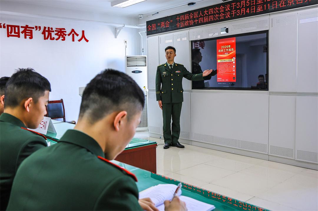隨著2026年全國兩會(huì)勝利閉幕,武警北京總隊(duì)執(zhí)勤第六支隊(duì)迅速掀起學(xué)習(xí)貫徹兩會(huì)精神的熱潮,用兩會(huì)精神武裝官兵頭腦,激發(fā)廣大官兵扎根軍營(yíng)投身強(qiáng)軍偉業(yè)的熱情。