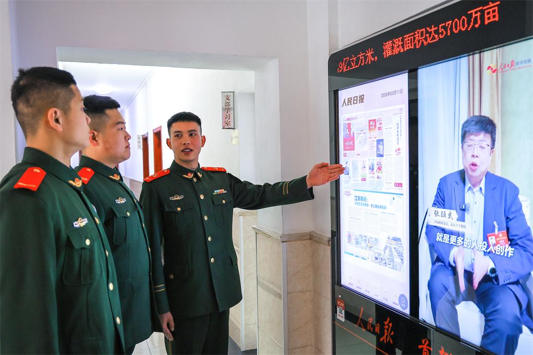 連日來,該支隊(duì)緊貼任務(wù)實(shí)際,創(chuàng)新學(xué)習(xí)形式,推動(dòng)全國兩會(huì)精神直達(dá)基層、深入兵心。從機(jī)關(guān)到基層,從干部到戰(zhàn)士,官兵們通過電視直播、報(bào)刊閱讀、網(wǎng)絡(luò)學(xué)習(xí)等多種渠道實(shí)時(shí)跟進(jìn)兩會(huì)動(dòng)態(tài),深刻領(lǐng)會(huì)精神實(shí)質(zhì);積極構(gòu)建視、聽、讀、議立體學(xué)習(xí)矩陣,從新媒體平臺(tái)實(shí)時(shí)推送,到利用政工平臺(tái)整合“三個(gè)半小時(shí)”打造的線上線下全媒體課堂,再到依托信息櫥窗、主題板報(bào)營(yíng)造“處處能學(xué)”氛圍,官兵們通過多渠道實(shí)現(xiàn)學(xué)習(xí)同頻共振、全員覆蓋?;鶎訂挝涣⒆銓?shí)際積極開設(shè)“士兵講堂”,遴選訓(xùn)練尖兵、理論骨干組成宣講小隊(duì),結(jié)合從軍經(jīng)歷、訓(xùn)練任務(wù)以及家鄉(xiāng)發(fā)展變化,分享自己對(duì)兩會(huì)精神的獨(dú)特見解和熱點(diǎn)詞匯。官兵們談體會(huì)、話使命、謀發(fā)展,在思想碰撞中凝聚奮斗強(qiáng)軍共識(shí),筑牢鐵心向黨的思想根基。