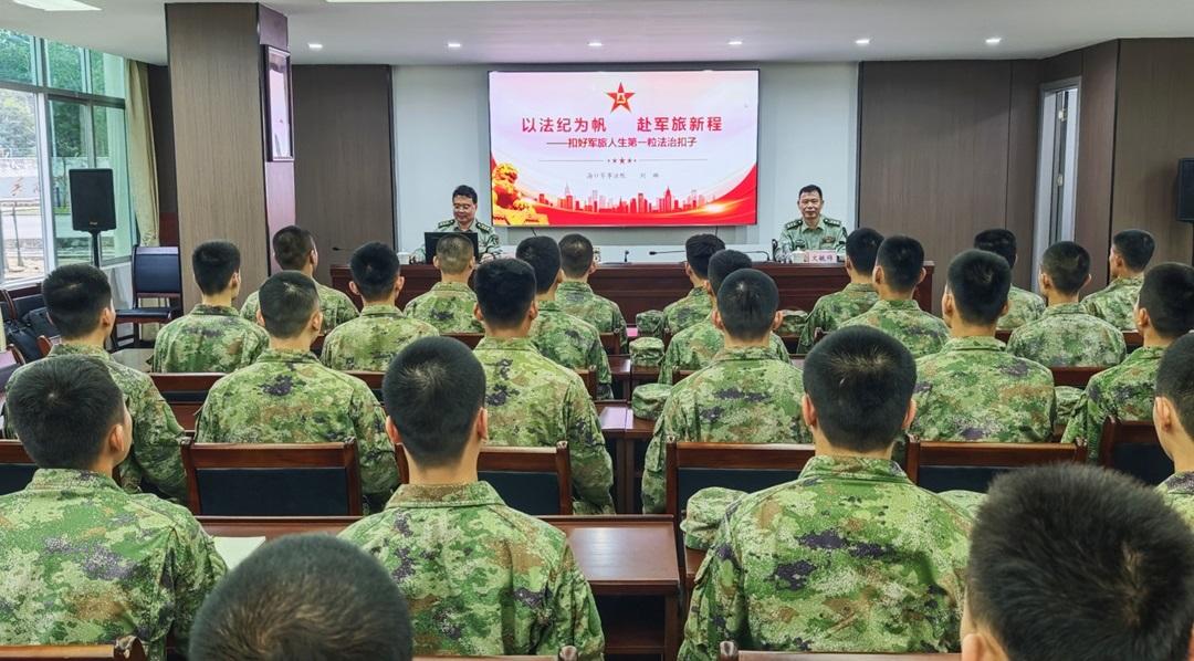近日,解放軍??谲娛路ㄔ簯?yīng)邀赴海南省某區(qū)縣預(yù)定新兵役前教育基地,開展“以法紀(jì)為帆、赴軍旅新程”專題法治宣講,幫助預(yù)定新兵扣好軍旅人生第一粒法治扣子。