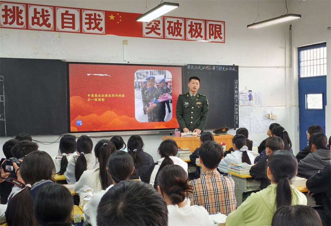 在申亮亮的母校溫縣第二實驗中學,湯宏華用情講述申亮亮事跡。同學們眼含熱淚,在筆記本上認真記下學長的故事?!坝⑿刍仨鴳?yīng)笑慰,擎旗自有后來人。申亮亮的英雄事跡,就是孩子們成長最好的思政教材?!钡诙嶒炛袑W教師薛娜說。