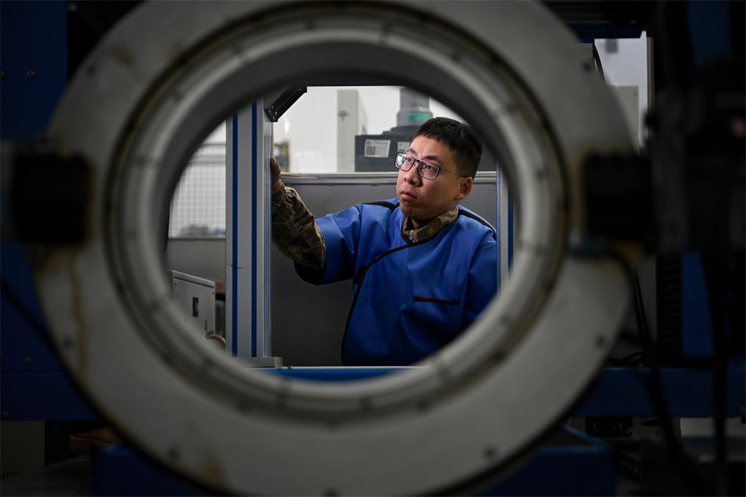 圖為王江帆正在進(jìn)行數(shù)字射線檢測(cè)。