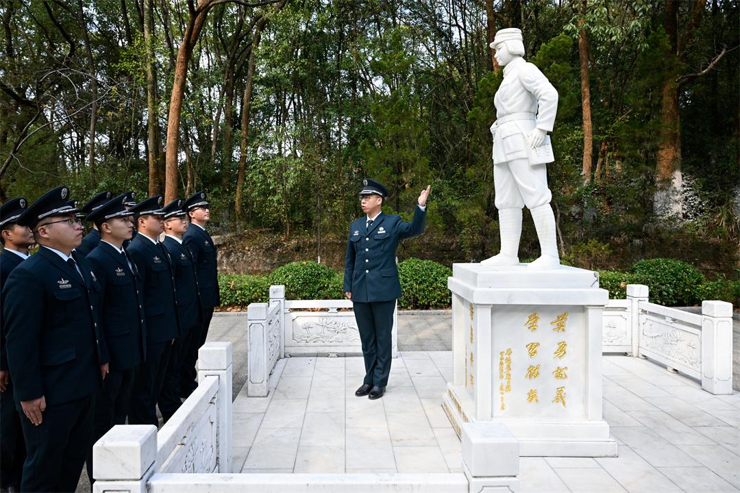 圖為王江帆和同事們?cè)诩t色教育基地上饒集中營(yíng)接受愛國(guó)主義教育,了解烈士事跡。