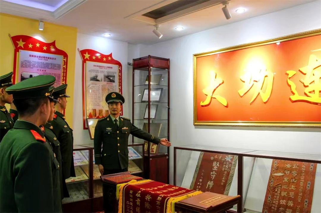 圖為在隊(duì)史館里講述戰(zhàn)斗史實(shí)。張憶 攝