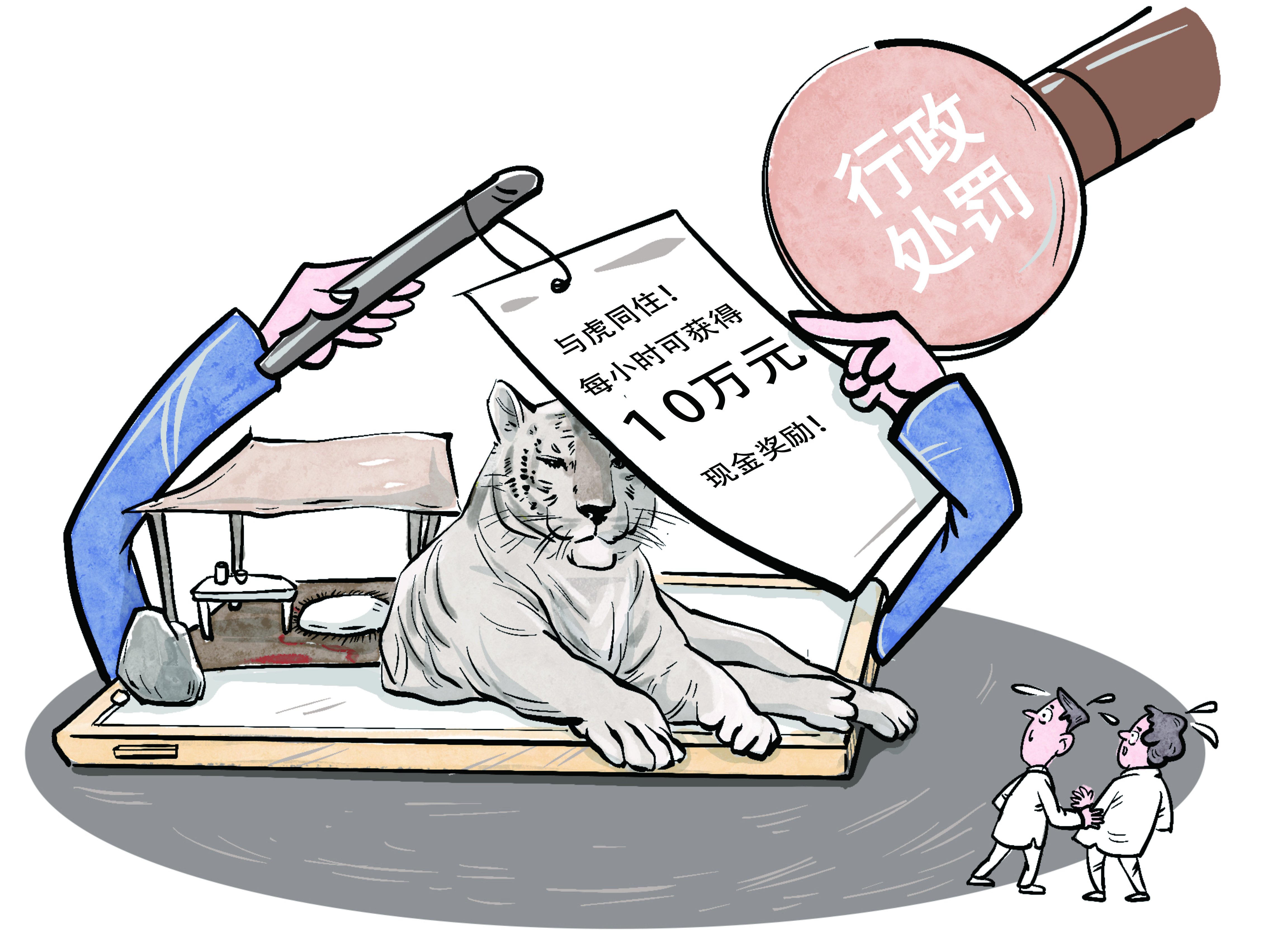 點(diǎn)評(píng):無(wú)論是真的想讓游客“與虎同住”,還是僅僅為了博眼球,該公司都涉嫌違法。對(duì)其依法予以嚴(yán)懲也表明法律紅線不容任何人觸碰。
