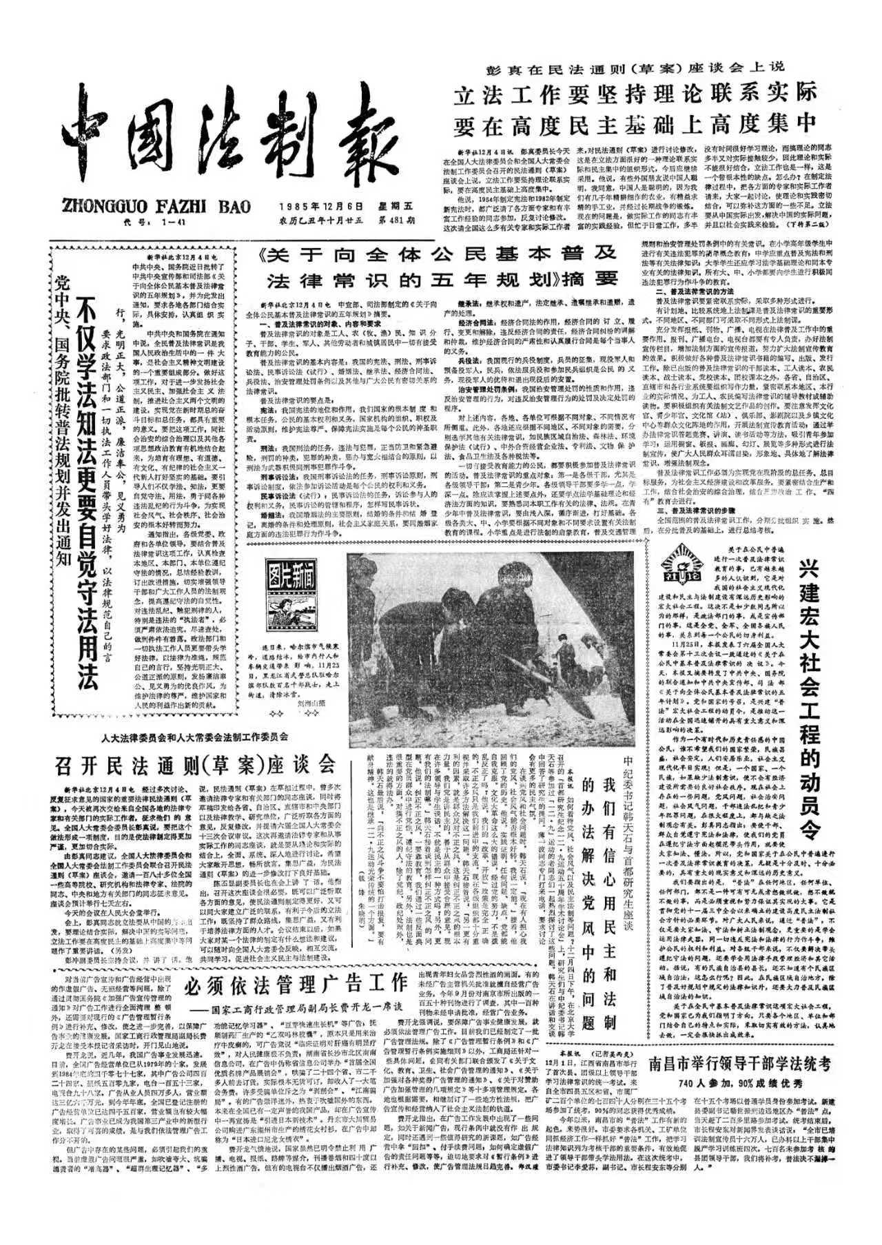 1985年11月5日,中共中央、國(guó)務(wù)院發(fā)出通知,轉(zhuǎn)發(fā)中央宣傳部、司法部《關(guān)于向全體公民基本普及法律常識(shí)的五年規(guī)劃》。通知明確指出,全民普及法律常識(shí)是我國(guó)人民政治生活中的一件大事,是社會(huì)主義精神文明建設(shè)的一個(gè)重要組成部分。同年11月22日,《全國(guó)人民代表大會(huì)常務(wù)委員會(huì)關(guān)于在公民中基本普及法律常識(shí)的決議》由六屆全國(guó)人大常委會(huì)第十三次會(huì)議通過。自此,國(guó)家以五年為周期,有計(jì)劃、有步驟地在全體公民中開展法治宣傳教育,全民普法正式走進(jìn)千家萬(wàn)戶的日常生活。