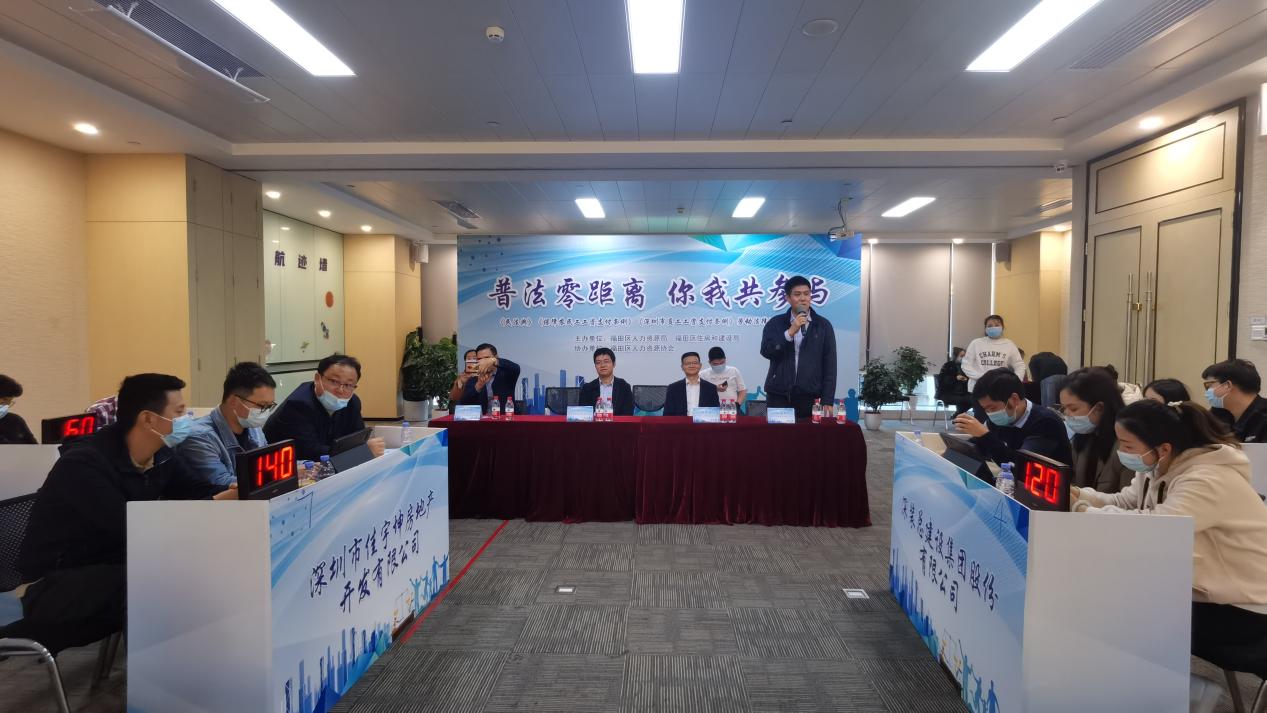 為提高轄區(qū)建筑企業(yè)的法律意識,增強企業(yè)依法規(guī)范用工能力,近日,由廣東省深圳市福田區(qū)人力資源局、福田區(qū)住房和建設局主辦,福田區(qū)人力資源協(xié)會協(xié)辦的“普法零距離 你我共參與”法律知識競賽在福田區(qū)保稅區(qū)聯(lián)合金融大廈舉行。