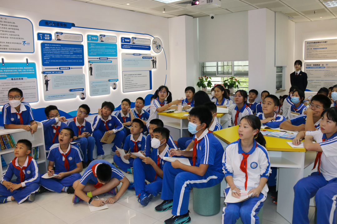 活動(dòng)中,檢察人員帶領(lǐng)同學(xué)們先后參觀了憲法墻、未成年人檢察辦案工作室、心理咨詢(xún)室、家庭教育指導(dǎo)工作站等區(qū)域,接受法治文化熏陶。在法治教育基地,檢察人員通過(guò)具體案例,以互動(dòng)教學(xué)的形式為同學(xué)們講解校園欺凌、毒品犯罪以及未成年人保護(hù)法等內(nèi)容,引導(dǎo)同學(xué)們警惕、抵制不良風(fēng)氣和違法犯罪行為,提高自我保護(hù)能力。