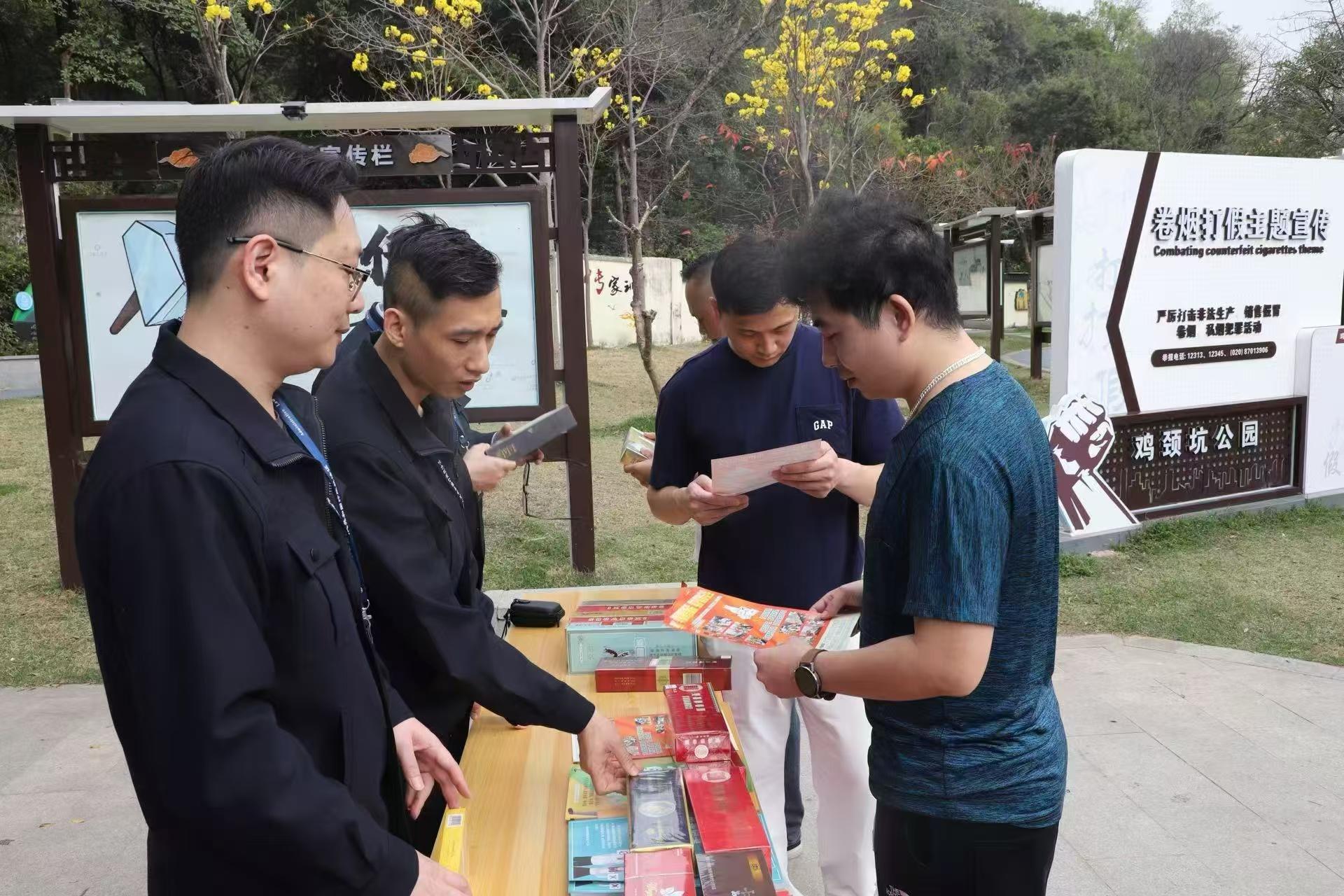 天河區(qū)煙草專賣局執(zhí)法人員為居民群眾講解卷煙真?zhèn)舞b別知識(shí)。白倍彰 攝