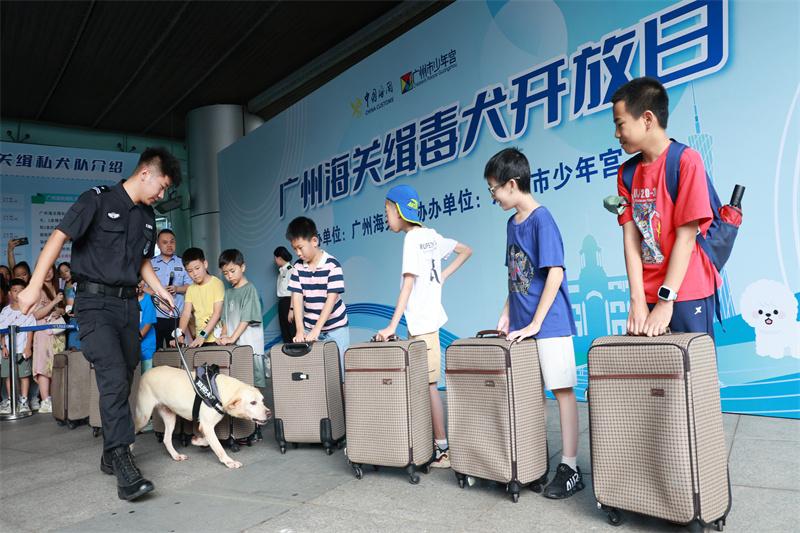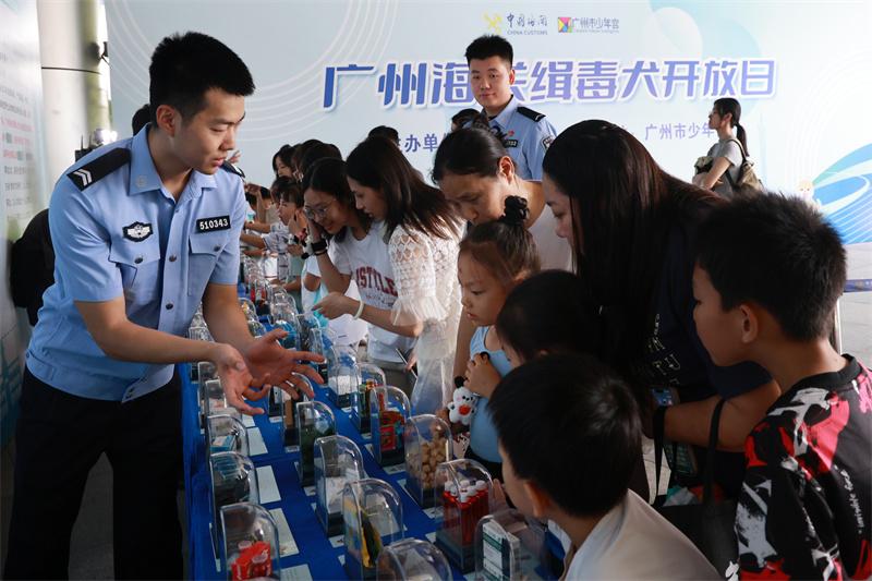 6月22日,廣州海關(guān)聯(lián)合廣州市少年宮舉辦“緝毒犬開放日”活動,通過寓教于樂的禁毒宣傳活動,讓廣大市民朋友在趣味游戲中了解海關(guān)打擊毒品走私工作成效、禁毒常識,并與海關(guān)緝毒犬進(jìn)行現(xiàn)場親密互動,活動吸引了400余名市民參加。