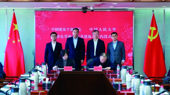 2月13日,中國(guó)人民大學(xué)與中國(guó)延安干部學(xué)院特色學(xué)科合作共建協(xié)議簽約儀式在中國(guó)人民大學(xué)舉行。中國(guó)人民大學(xué)黨委書(shū)記張東剛,黨委副書(shū)記、副校長(zhǎng)胡百精,副校長(zhǎng)王易;中國(guó)延安干部學(xué)院分管日常工作的副院長(zhǎng)姜澤洵,副院長(zhǎng)趙耀宏、韓東暉出席簽約儀式。中國(guó)人民大學(xué)黨委副書(shū)記齊鵬飛主持簽約儀式。