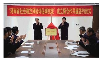 近日,河南省社會穩(wěn)定風(fēng)險評估研究院成立暨合作共建簽約儀式在河南財經(jīng)政法大學(xué)舉行。河南省社會穩(wěn)定風(fēng)險評估研究院旨在為河南省社會公共治理提供專業(yè)的理論研究和智庫服務(wù),維護(hù)國家政治安全、社會穩(wěn)定,防范化解重大矛盾風(fēng)險,提升風(fēng)險評估工作科學(xué)水平,為新形勢下建設(shè)更高水平的平安河南提供有力保障。