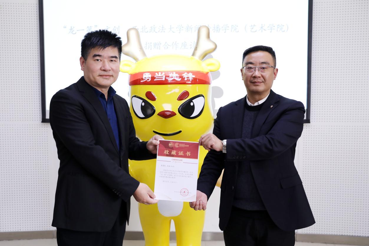 3月29日,深圳文創(chuàng)品牌“龍一第”向西北政法大學(xué)新聞傳播學(xué)院(藝術(shù)學(xué)院)捐贈(zèng)IP雕塑儀式在長(zhǎng)安校區(qū)舉行。