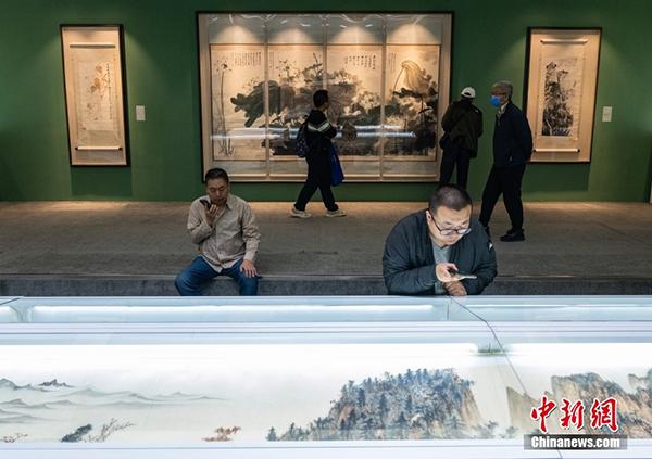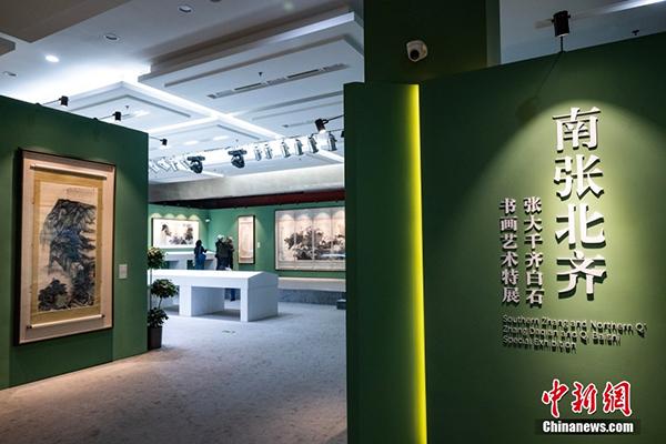 4月13日,市民在北京榮寶齋欣賞在此舉辦的“南張北齊——張大千齊白石書畫藝術特展”。本次特展精選張大千與齊白石一生早、中、晚三個時期,近五十件(組)佳作,完整地涵蓋了兩位世紀巨匠各個時期的創(chuàng)作面貌。