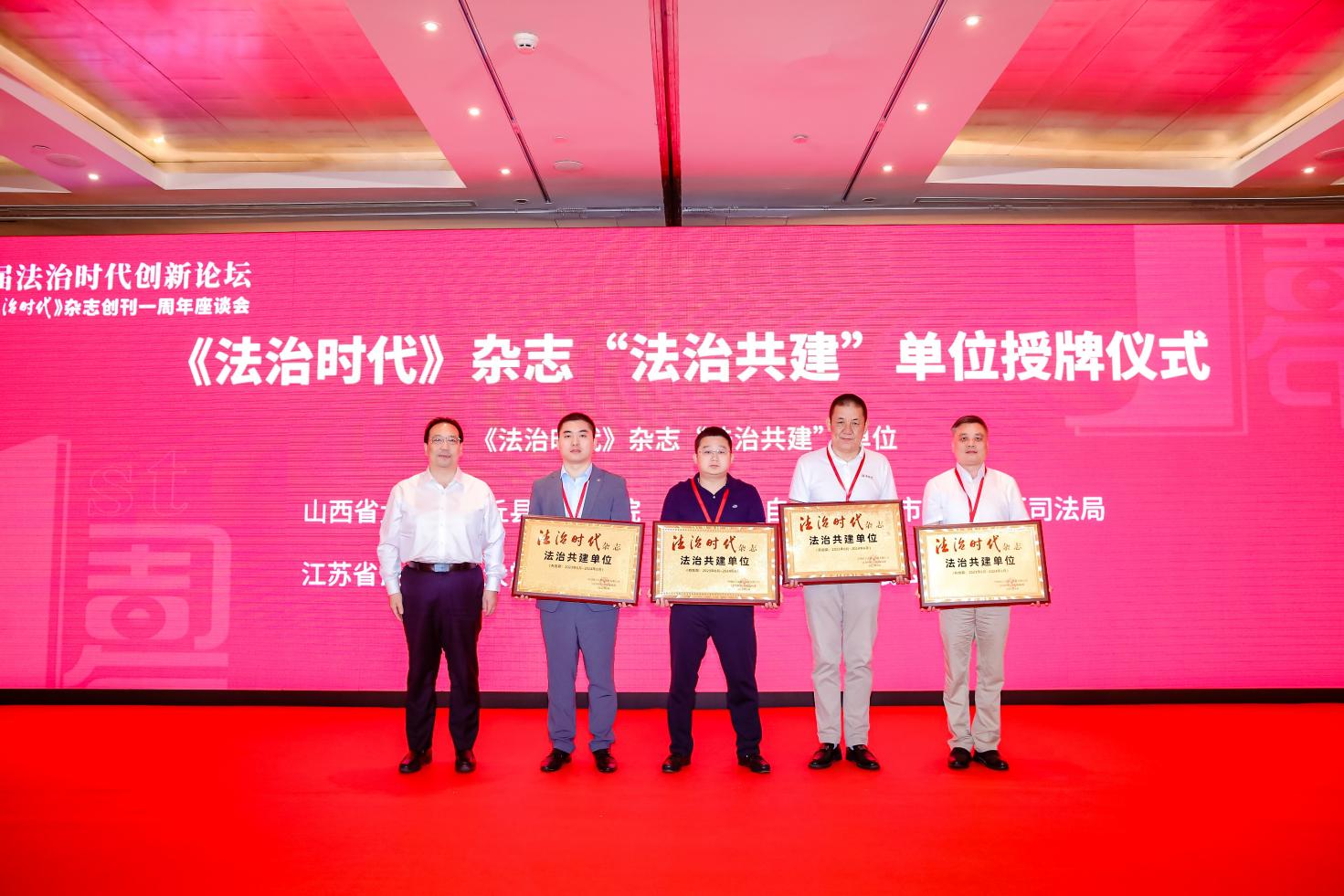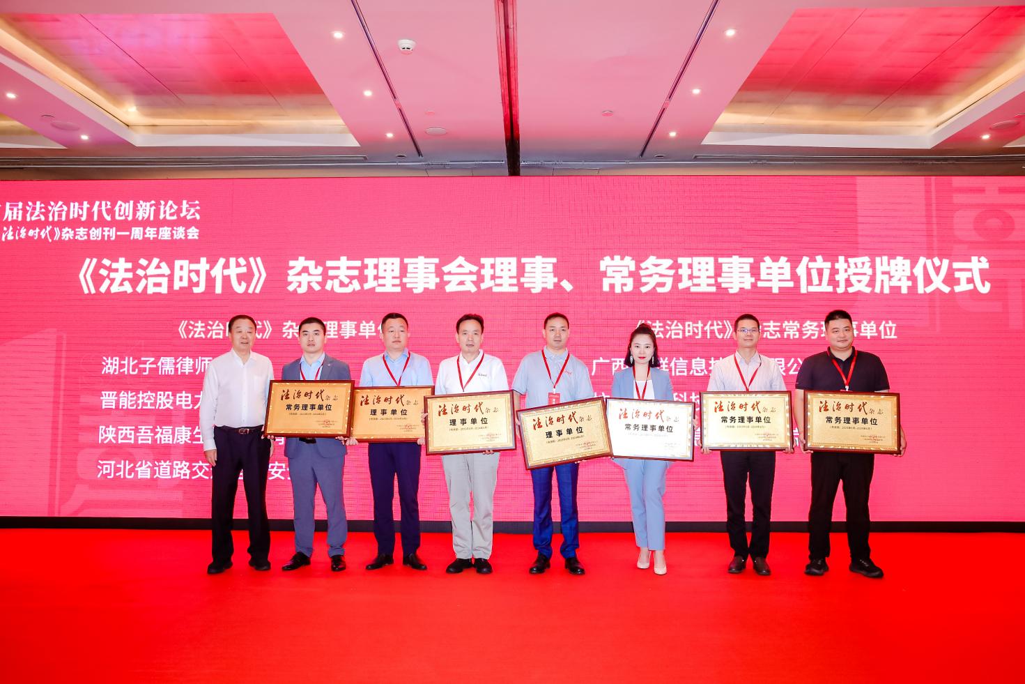 主旨演講環(huán)節(jié)結(jié)束后,進(jìn)行了《法治時代》雜志理事會理事單位、常務(wù)理事單位、《法治時代》雜志“法治共建”單位聘任儀式。第十二屆全國人大法律委主任委員喬曉陽、中國出版集團(tuán)有限公司總經(jīng)理、黨組副書記常勃分別為理事單位、常務(wù)理事單位和“法治共建”單位授牌。