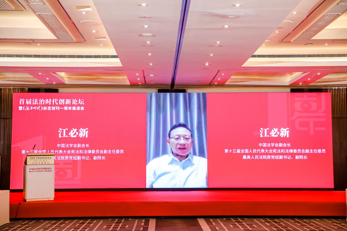 中國法學(xué)會副會長,第十三屆全國人民代表大會憲法和法律委員會副主任委員,最高人民法院原黨組副書記、副院長江必新在視頻致辭中表示,《法治時代》需要守正,更需要創(chuàng)新。法治必須與時俱進(jìn),必須不斷地創(chuàng)新,真正對我們?nèi)娼ㄔO(shè)社會主義現(xiàn)代化國家提供更加有力的保障。