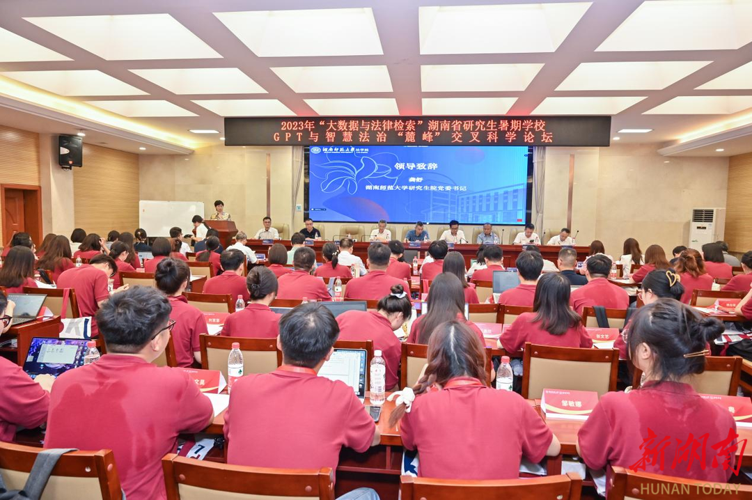 8月1日,“大數(shù)據(jù)與法律檢索”湖南省研究生暑期學校在湖南師范大學法學院開班,并在開幕式后舉行了GPT與智慧法治“麓峰”交叉學科論壇。來自最高人民檢察院、北京大學、中國人民大學、北大法寶等單位近30位專家學者對上述前沿問題給出了答案,暑期學校128名學員線下參與學習。1.2萬余人通過北大法寶學堂平臺觀看了同步直播。