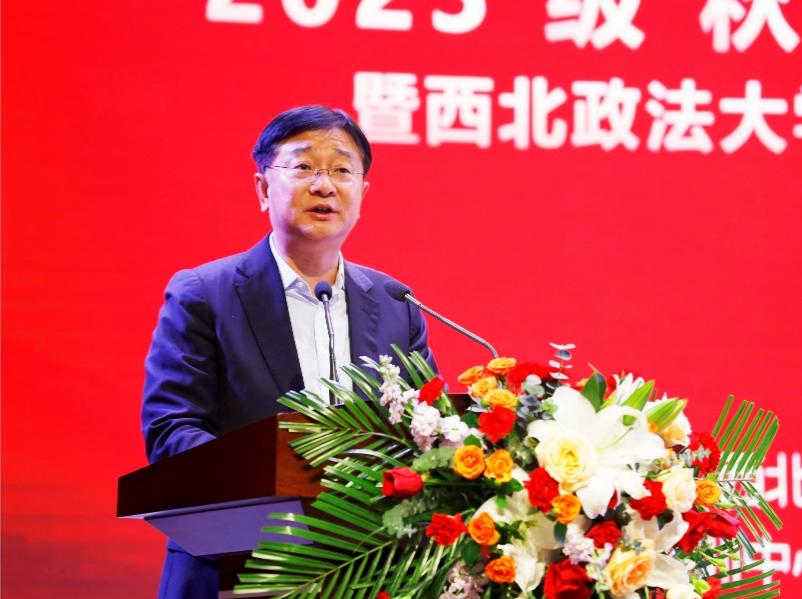 開學典禮上,西北政法大學黨委副書記、校長范九利代表學校致辭,并與靈武市委副書記、市長楊玉龍為西北政法大學(寧夏)培訓基地揭牌。靈武市150名黨政人才參加開學典禮。